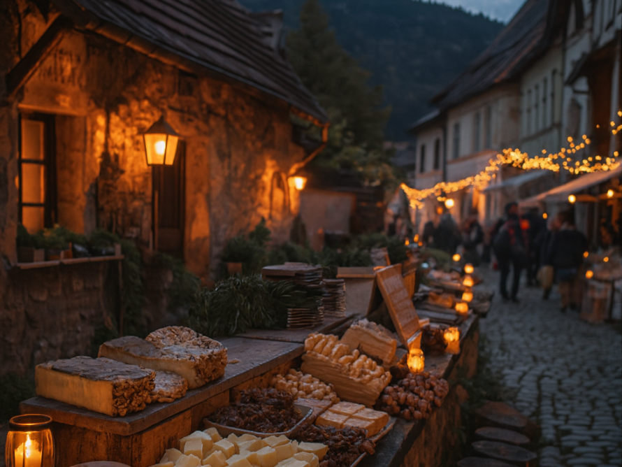 - Comida medieval: brasas, quesos, dulces, vino caliente